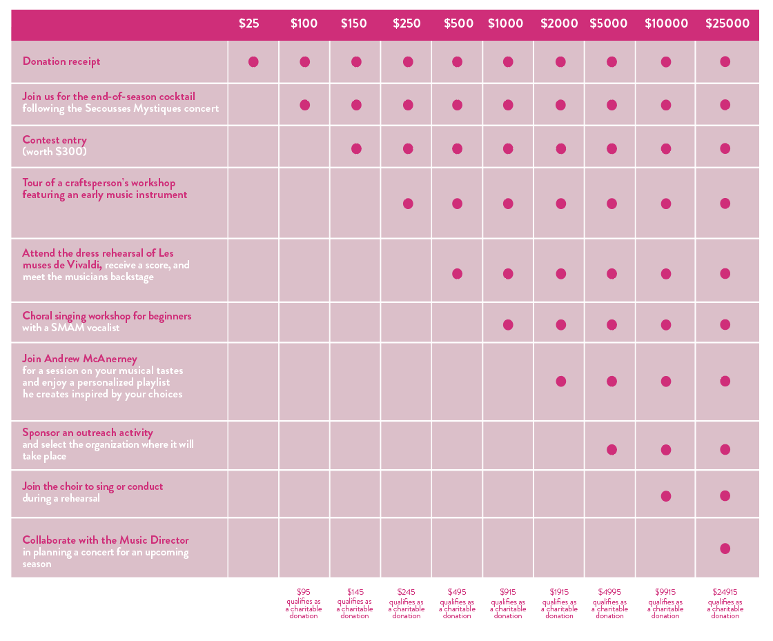 “Making a donation is a way to show your appreciation for the excellence of SMAM’s choir. It is also a way to express gratitude for the moments of grace the organization provides. I am proud to support SMAM and contribute to the sustainability of this unique artistic experience.”